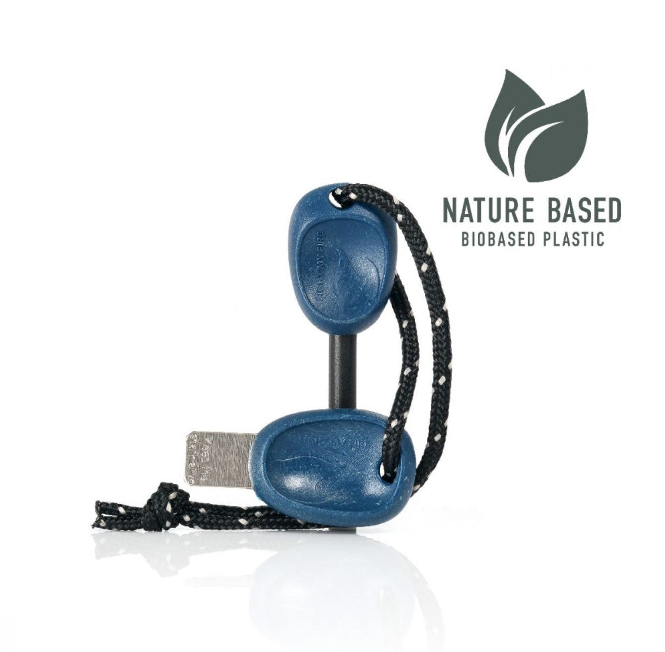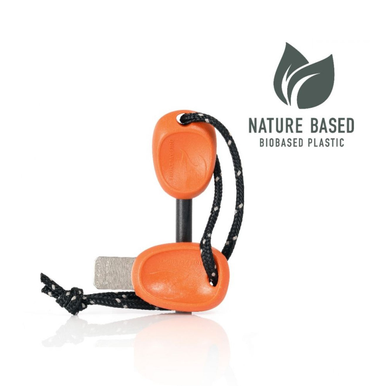Spark-sure magnesium alloy. Strong nylon cord. BIO-plastic handles. Stainless steel striker.Sustainable Features