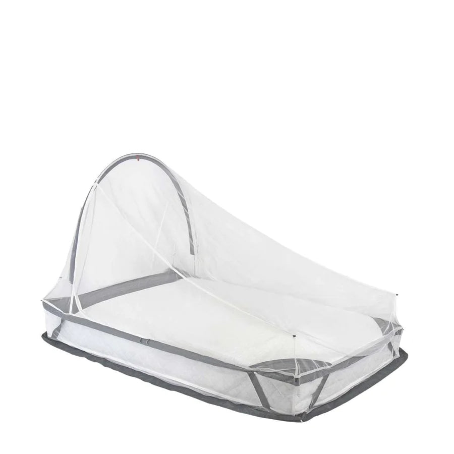 The self-supporting mosquito net features a lightweight aluminium frame at the head-end to create a wedge-shape net that requires no hooks or hanging. The spacious interior has excellent air flow and zipped door panels on both sides for ease of access. With EX8 Anti-Mosquito long-life impregnation, the white mesh netting with 156 holes per sq. inch is ideal for travellers and those on expeditions staying in accommodation where hanging points may not be available.