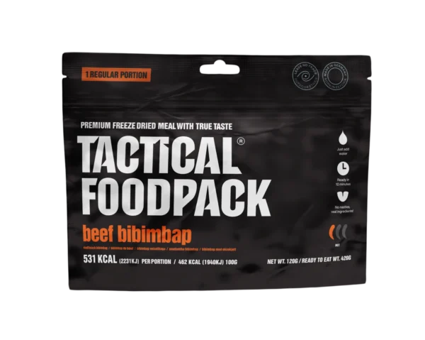 Experience the rich, bold flavors of Korean cuisine with our Beef Bibimbap. This satisfying blend of rice, tender beef and vegetables is perfectly spiced to deliver a pleasant kick to your tastebuds. Lightweight and freeze-dried for convenience, this delicious outdoor food is ready in 10 minutes to enjoy wherever your adventures take you.