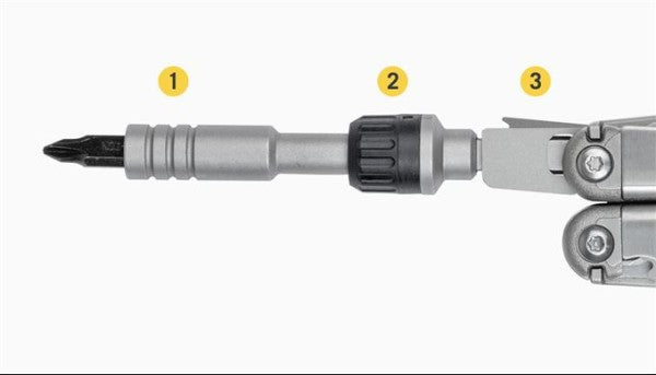 Bit Driver CompatibilityThe Ratchet Driver works with any multi-tool or knife that’s equipped with a large bit driver.