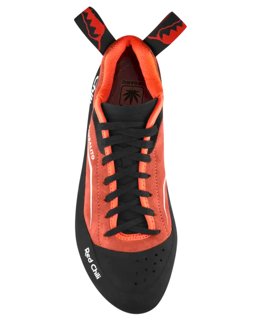 A padding in the heel area ensures maximum comfort. Another feature is the antibacterial footbed made from hemp which effectively blocks odors. Due to its slightly broader last shape and the large adjustment range offered by the extended lacing system, the SAUSALITO fits almost anyone looking for a super comfortable climbing shoe and it’s also suitable for climbers with problematic feet.