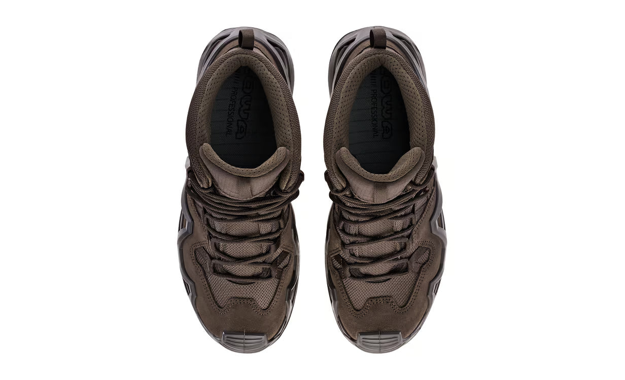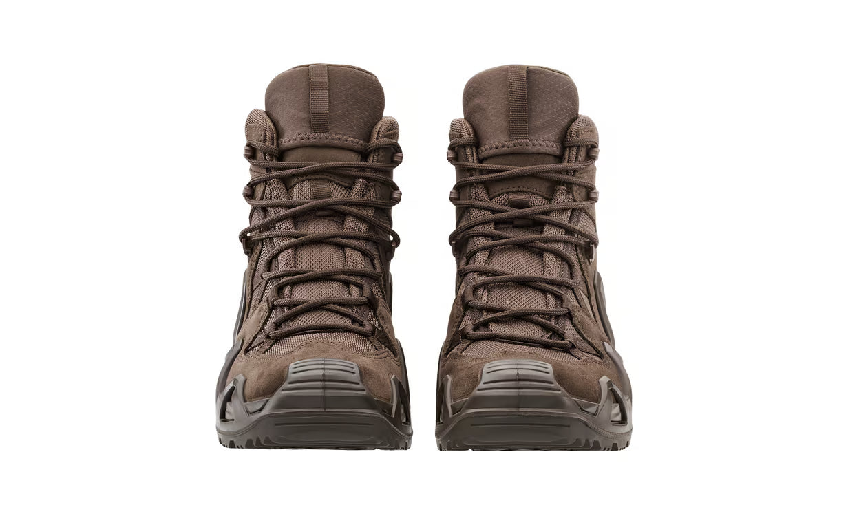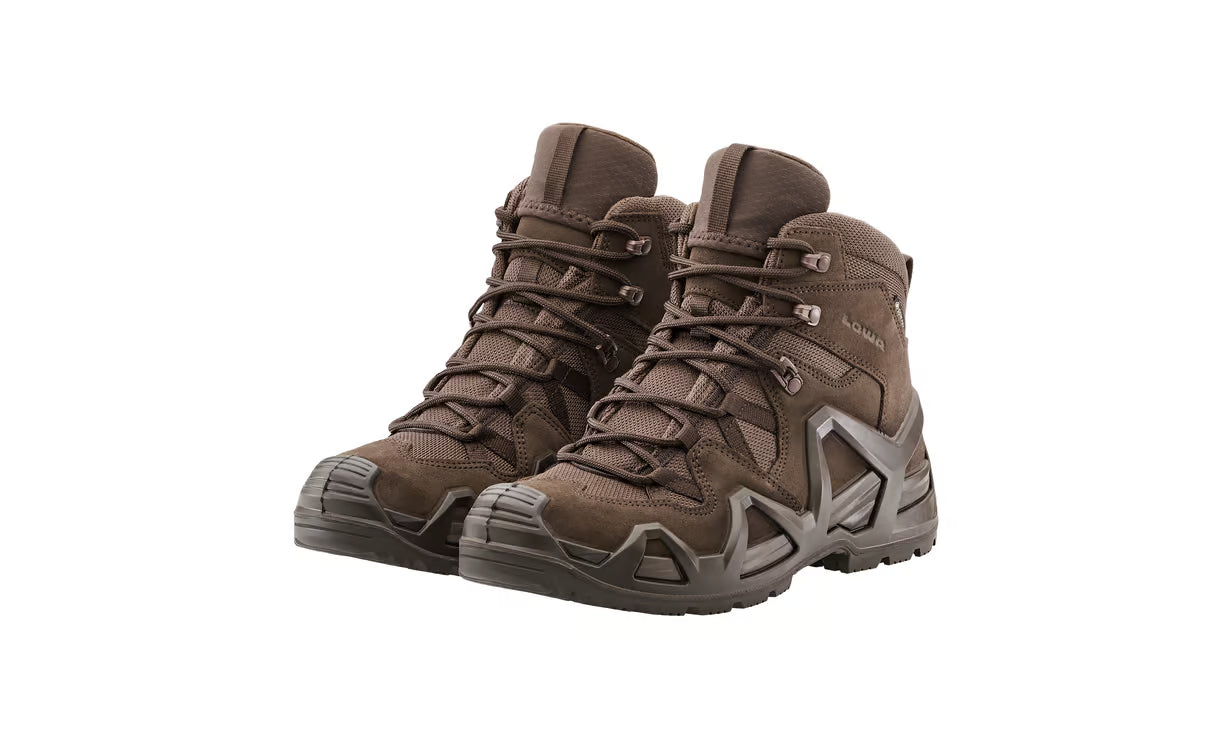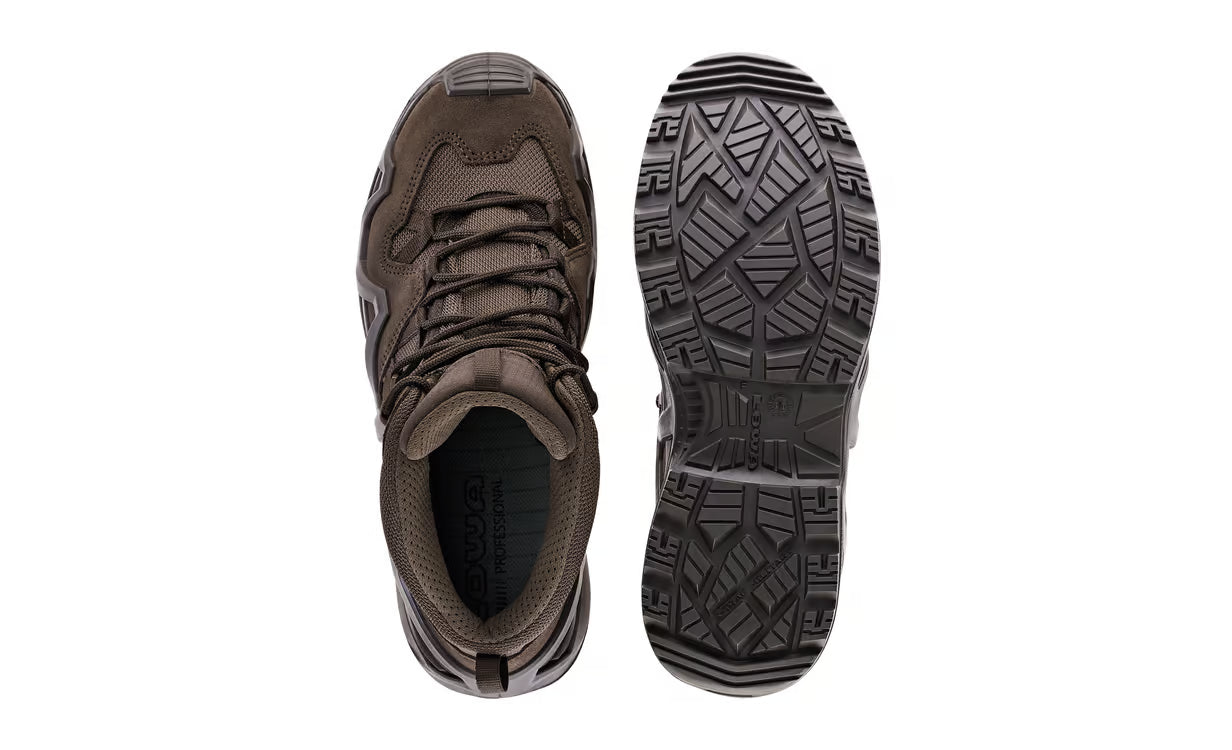The best just got better. The LOWA ZEPHYR MK2 GTX® MID represents the next stage in the evolution of the legendary Lowa Zephyr mission, exercise and operational boot. A combination of agility, lightness and stability makes it ideal for use in the military, police, special units and by regular forces personnel. The MID-CUT upper provides the necessary support during fast roping and allows full freedom of movement during close combat. The protected medial side of the boot prevents premature wear and tear caused by fast roping. The upper is made from a combination of water-repellent, tear-resistant suede and abrasion-resistant, breathable CORDURA® material. An innovative locking hook allows the lacing to be individually adjusted in the forefoot and ankle area. The waterproof, highly breathable GORE-TEX® Professional Extended Comfort footwear membrane is ideal for use in moderate or wet environments. The dual-layer PU midsole with MONOWRAP® frame surrounds and supports the foot like an exoskeleton.